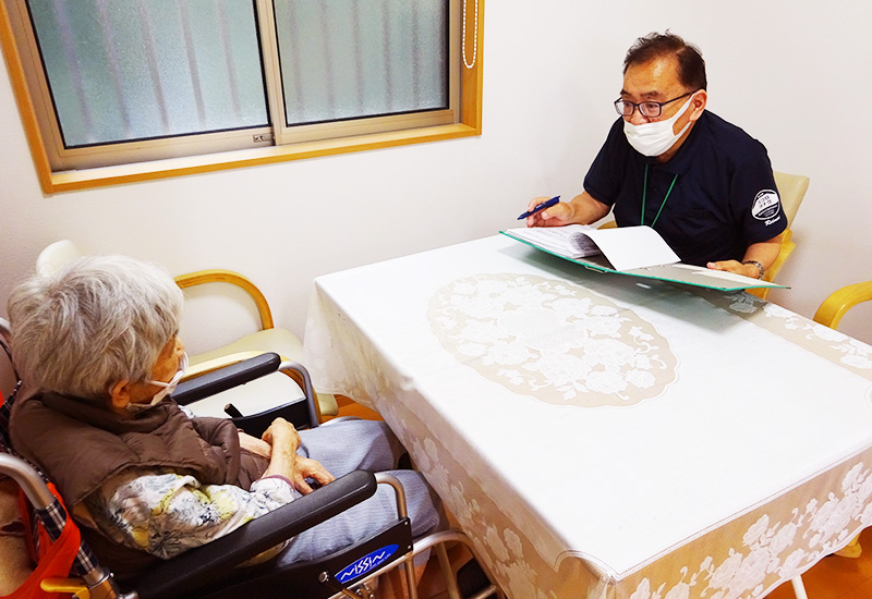 ご利用者の要望や生活状況を的確に把握することで最適なケアプランへの見直しを行うために、ケアマネージャーは月に1回以上の頻度でご利用者の自宅を訪問させていただいております。お困りごとや不安なことがございましたら定期訪問の際にお気軽にご相談ください。